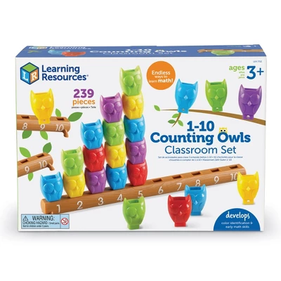 Whoooooo’s ready to learn new skills? Students get a wise introduction to number recognition, counting, and other early math skills every time they play with the 1–10 Counting Owls Classroom Activity Set from Learning Resources. An expanded version of our popular 1–10 Counting Owls Activity Set, this classroom set of math manipulatives has enough owls (and enough learning) for all of your small-group math activity needs. Using the set’s 4 branches and 220 owl counters, you can introduce everything from colors and counting to addition and subtraction to patterning and sorting skills and more. Arrange the owls from 1 to 10 on their branches, sort them by color, or count them all up—the 1–10 Counting Owls Classroom Activity Set is versatile enough to support these activities and more. The 1–10 Counting Owls Classroom Activity Set also comes with an expanded classroom guide filled with additional activities and suggestions that turn each math lesson into the opportunity for wise owl fun.
