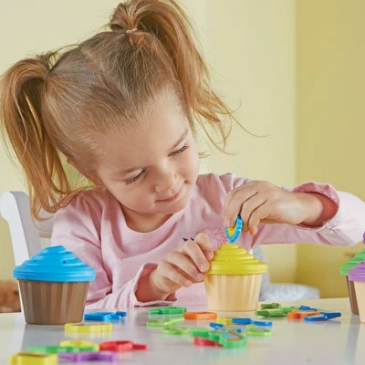 Turn learning the ABCs into a treat-filled party! Kids learn alphabet and early language skills at every tea party with the ABC Party Cupcake Toppers from Learning Resources. This set’s six pretend cupcakes come ready to decorate with 52 letter and picture toppers that help kids work on learning the alphabet, mastering beginning sounds, building vocabulary skills, and more. ABC Party Cupcake Toppers support open-ended play – match the toppers to their starting letters, explore the difference between upper and lowercase letters, or consult the online word list for a guide to spelling simple two- and three-letter words! Toppers double as fun cupcake decorations, and add imaginative treat games of pretend or tea parties for imaginary friends! When playtime ends, the toy cupcakes reveal their neatest trick yet: all 52 toppers store inside the 6 cupcake bases, turning cleanup from a chore to a delight.