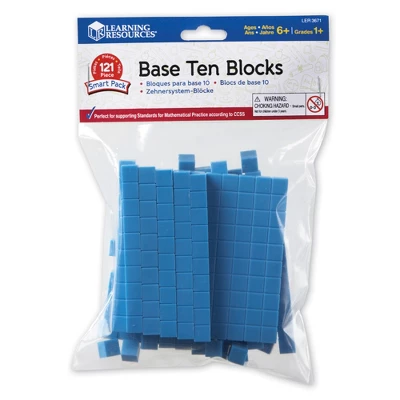 Base Ten Blocks Smart Pack Base Ten Blocks (LER 0930) in a handy, smaller set! Perfect for small group or individual classroom instruction, this Smart Pack supports Standards for Mathematical Practice according to the Common Core. Set of 121 (1 flat, 20 rods, and 100 units) comes in a resealable polybag and includes an Activity Guide. Grades 1+ | Ages 6+