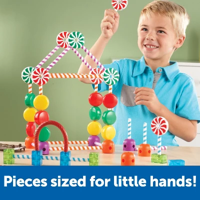 Build some sweet structures. Stretch those creativity, problem solving and fine motor skills. Includes chunky, durable candy pieces in a variety of fun, familiar designs plus Activity Guide with illustrated, step-by-step building directions. The largest piece measures 7″L x 1/2″ in diameter.We’re Learning Resources®, and we’ve been helping parents and teachers build generations of amazing kids since 1984. From ABCs and 123s to fine motor and STEM skills, our educational toys offer kids the building blocks they need to succeed in school and develop a lifelong love of learning. Discover countless ways to learn through play with our award-winning products, including Toy of the Year winners Tumble Trax®, Botley® the Coding Robot, and Coding Critters™.