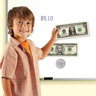 Teach the entire class important money skills with over-sized and double-sided magnets. Great for lessons on coin identification, counting, and making change. This 45-piece set includes 36 coins (pennies, nickels, dimes, and quarters) at 4x actual size, 9 bills (1-, 5-, 10-, and 20-dollar bills) at 1.5x actual size.We’re Learning Resources®, and we’ve been helping parents and teachers build generations of amazing kids since 1984. From ABCs and 123s to fine motor and STEM skills, our educational toys offer kids the building blocks they need to succeed in school and develop a lifelong love of learning. Discover countless ways to learn through play with our award-winning products, including Toy of the Year winners Tumble Trax®, Botley® the Coding Robot, and Coding Critters™.