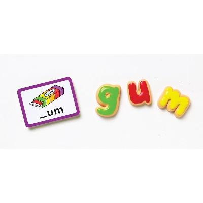 - 42-PIECE SET: Set includes 42 plastic letter-shaped cookies, 45 double-sided cards, 2 spinners, plastic storage jar, and activity guide