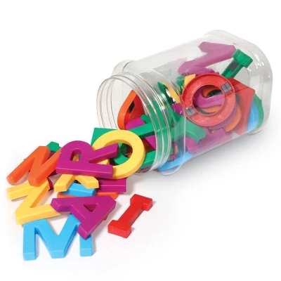 Motivate your child to explore the alphabet and spell simple words with big, bright, colorful letters designed for little hands. Includes extra letters for spelling. Their big size makes them easy for little hands to manipulate. Great for whiteboards and other magnetic surfaces. This set of 40 uppercase letters is packaged in a reusable storage container. Great for kids ages 3 and up!