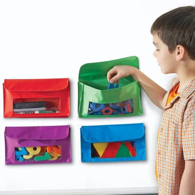 Use the 4 colored charts alone, or connect vertically or horizontally with hook-and-loop fasteners to make a larger chart. Great for small groups, centers, combined whole-group displays and more. Features 5 rows of clear pockets for your own cards, plus 2 large storage pockets on the reverse side.