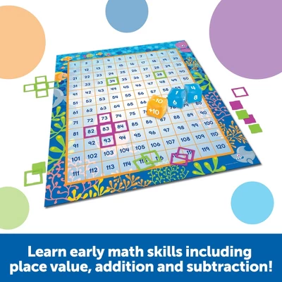 Learn about place value and practice addition and subtraction using number patterns on the grid. Perfect for helping children focus on important math concepts. Make A Splash 120 Floor Mat Game Features: Durable ocean-themed mat that measures 48″ x 56″ 3 inflatable cubes 64 frames and 64 markers 4 t-shaped frames that highlight 10 more/less and 1 more/less Activity Guide featuring CCSS-based activities