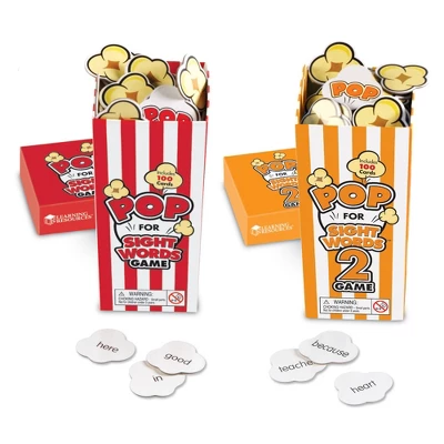 Improve word recognition through fast-paced game play. Use the abundant word cards for your own early literacy activities. Bundle includes Pop for Sight Words and Pop for Sight Words 2 Games. Each game includes 100 die-cut popcorn cards (92 sight word cards and 8 POP cards), and guide printed on box.We’re Learning Resources®, and we’ve been helping parents and teachers build generations of amazing kids since 1984. From ABCs and 123s to fine motor and STEM skills, our educational toys offer kids the building blocks they need to succeed in school and develop a lifelong love of learning. Discover countless ways to learn through play with our award-winning products, including Toy of the Year winners Tumble Trax®, Botley® the Coding Robot, and Coding Critters™.